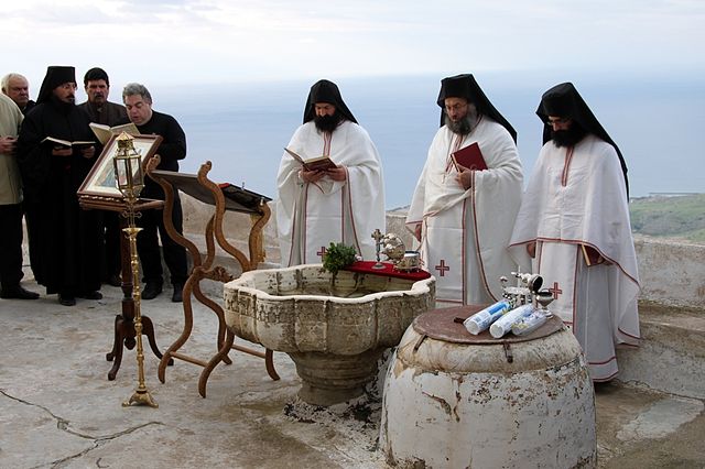 | DescriptionEpiphany Mass in the Monastery of Prophet Elias of Santorini.jpg |