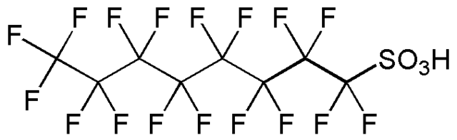 Structure of perfluorooctanesulfonic acid (acid form of PFOS). |
