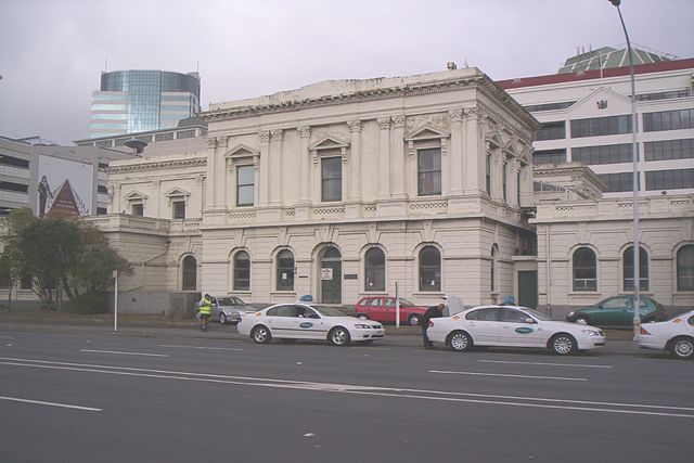Picture taken by myself, Lewis Holden, of the proposed new Supreme Court - the Old High Court on Whitmore Street in Wellington. The Old Government Building is behind the photographer, and behind the Old High Court (slightly obscured by the picture) is the Wellington District Court (Note the  en:Coat of Arms of New Zealand at the top of the building). |