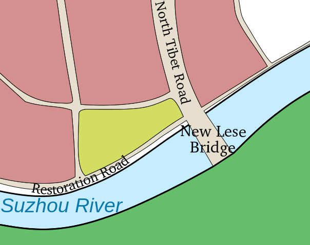 English: Map of Sihang Warehouse and surrounding areas during the Battle of Shanghai   Sihang Warehouse, garrisoned by NRA