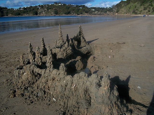 English: According to a New Zealander named Debbie, this is Oneroa Beach, sometimes called Big Oneroa. It is on Waiheke Island, near Auckland, New Zealand. She further informs us that Little Oneroa beach is the small one around the rocks in the distance. Waiheke has beaches with great sand for sandcastles. I dripped this one in a half an hour. This picture is public domain from An American's perspective on New Zealand (see notice at top of article). Questions? Ask here.