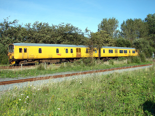 A Network Rail engineers train waits for the road at Aberystwyth. In the foreground is the narrow gauge track of the Vale of Rheidol Railway. |