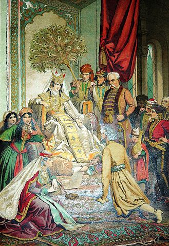 English: " Shota Rustaveli presents his poem to Queen Tamar". Painted in Tbilisi