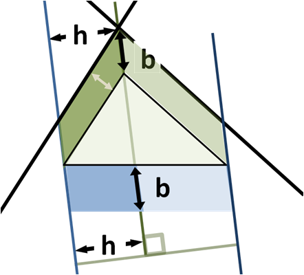 English: Construction to generalize Pythagoras' theorem to arbitrary triangles