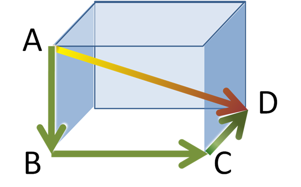 English: Three dimensional Pythogoras' theorem