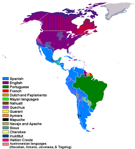 This is a retouched picture, which means that it has been digitally altered from its original version. Modifications: Translated using the wonderful service of Wiktionary.. The original can be viewed here: Idiomas_de_américa.png. Modifications made by Bob the Wikipedian.