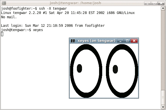 - (del) (rev) 20:38, 21 January 2006 . . NONCENSORED Popeye (Talk) . . 1024x768 (243170 bytes) (Example of remotely running an X11 program through SSH tunnelling.)