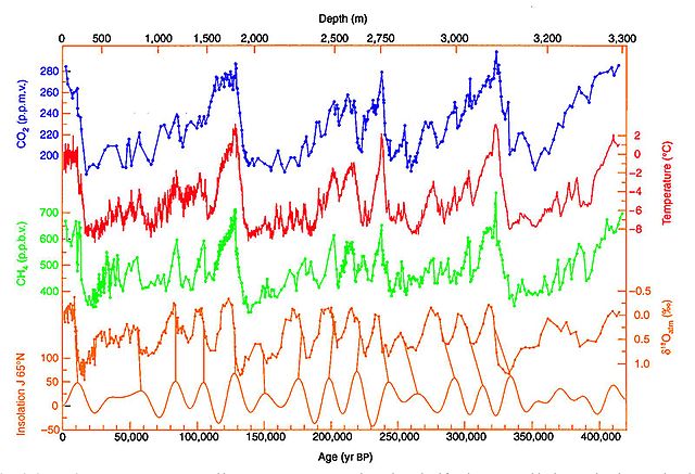 420,000 years of ice core data from  Vostok,  Antarctica research station.