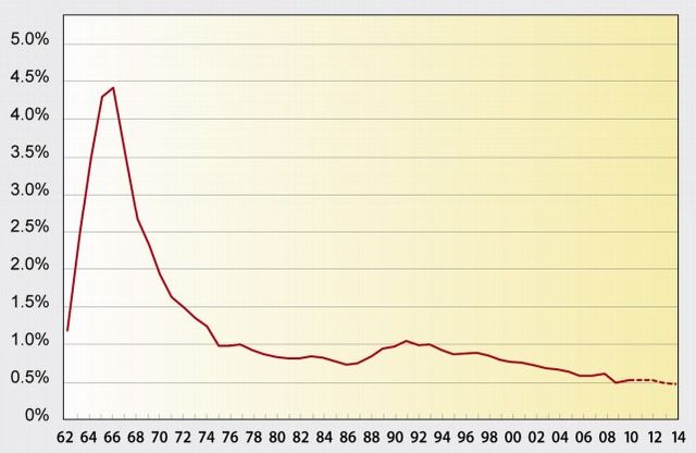 English: NASA's budget 1962-2014 (fiscal year) as percentage of Federal budget