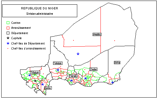 transfer of GFDL user made image from fr:wikipedia.  http://fr.wikipedia.org/wiki/Image:Niger_admin.png Reads:"Carte administrative du  Niger