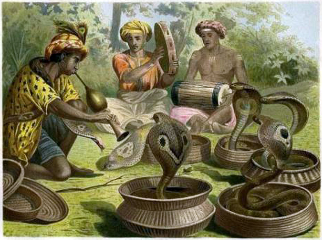 English: "Snakecharmers," a chromolithograph by Alfred Brehm, c.1883 Source: ebay, Jan. 2007