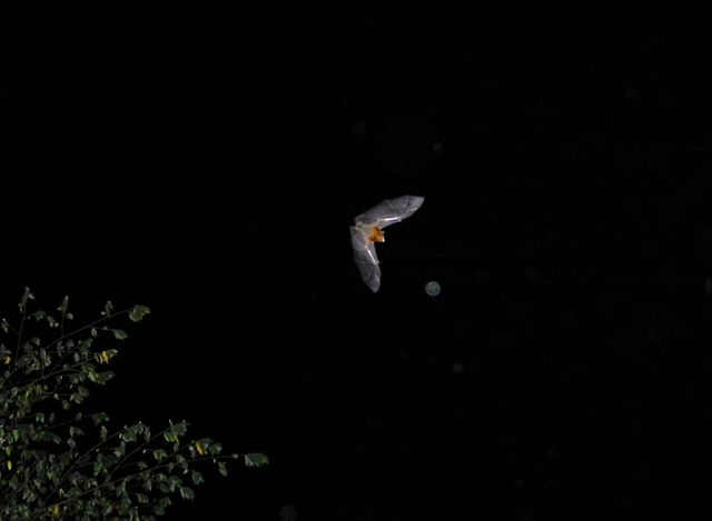 English: Philippine bat Own work, self-made. Out of 17,000 shots of my Nikon and Sony cameras without using speed lights and shutter, but just night portrait with simple flash, I successfully caught the flying of a nocturnal creature bat above our Aratiles tree Bat [3]The megabat, contrary to its name, is not always large: the smallest species is 6 cm (2.4 in) long and thus smaller than some microbats.[1] The largest reach 40 centimetres (16 in) in length[citation needed] and attain a wingspan of 1.7 m (5.6 ft), weighing in at up to 1.6 kg (3.5 lb). Most fruit bats have large eyes, allowing them to orient visually in the twilight of dusk and inside caves and forests.