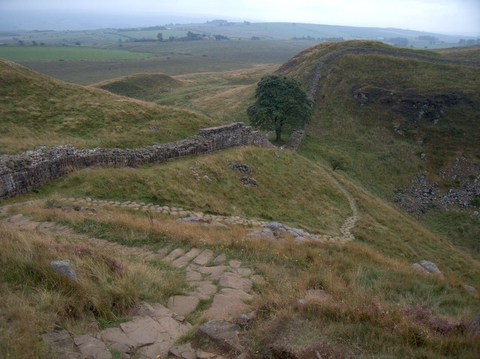 English: Transferred from en.wikipedia.org  : 2005-09-26 22:22 . . Moyn2000 . . (Robin Hood Tree aka Sycamore Gap, Hadrian's Wall, UK. Taken by and uploaded by Dennis Moynihan, 2005. Image may be used without restriction.)