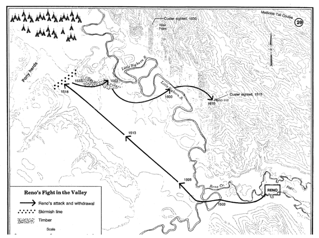 Major Marcus Reno's Movement to Contact with Indian Village at the Little Bighorn Battle |