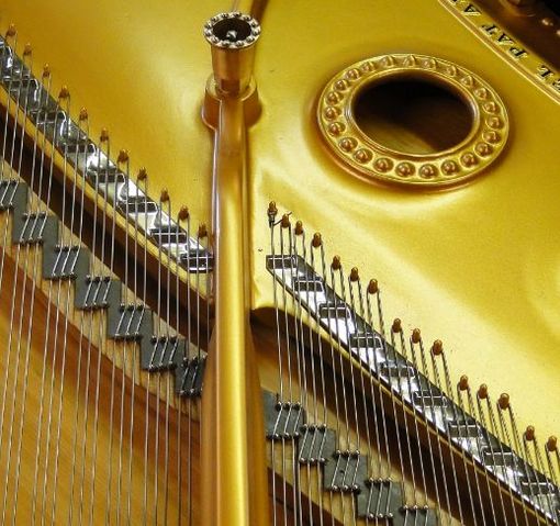 Nederlands: 1883 Steinway duplex scaling, een deel van de snaar wordt benut als resonantiesnaar.