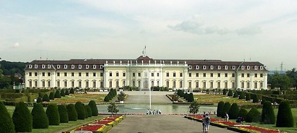 Front view of residential baroque palace built by Duke Eberhard Ludwig, Ludwigsburg Germany |