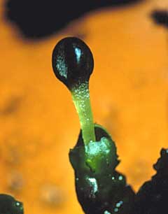 Description Magnified view of an emergent sporophyte of Porella (leafy liverwort).