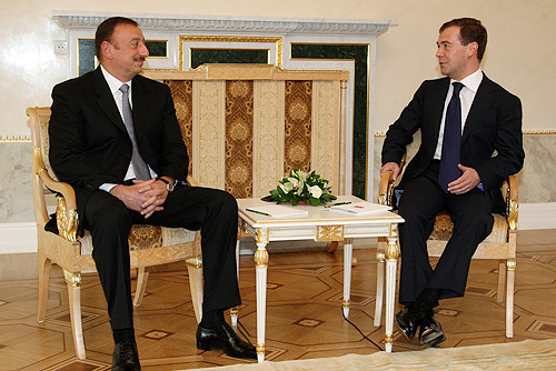 Русский: СТРЕЛЬНА, КОНСТАНТИНОВСКИЙ ДВОРЕЦ. С Президентом Азербайджана Ильхамом Алиевым.