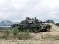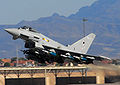 A collage representing the Tri-Services of the British Armed Forces, including one of the Royal Navy's Type 45 destroyers, HMS Daring, a British Army, Challenger II main battle tank and a Royal Air Force, Eurofighter Typhoon FGR4.