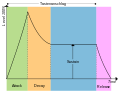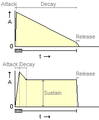 Image of how the four parameters A, D, S and R change the shape of an inverted ADSR envelope.