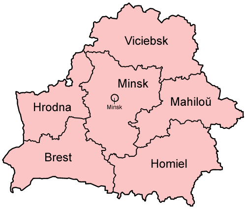 Map of the provinces of Belarus in English, from the English Wikipedia.