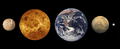 English: Size comparison of the four terrestrial planets (Mercury, Venus, Earth, Mars) in true colour.