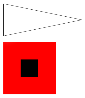 U.S. Storm Warning with Northwest Winds; White pennant above square red flag with black centre. |