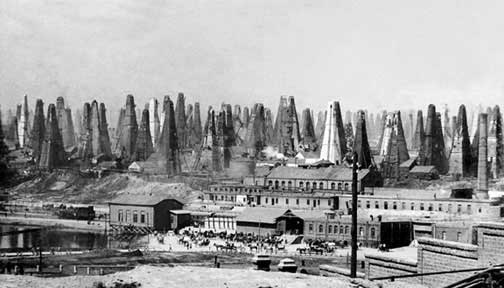 Photograph of the Branobel wells in Balakhani, a suburb of Baku in Azerbaijan. |