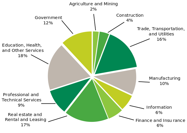 Management, Administrative, waste, Educational, Health care, social assistance, other services except gov't, arts, entertainment, recreation, accommodation, and food services |