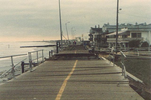 English: Damage to the boardwalk in Ocean City, New Jersey from Hurricane Gloria