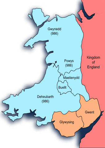 English: Map of Wales 986-99 (Maredudd ab Owain)