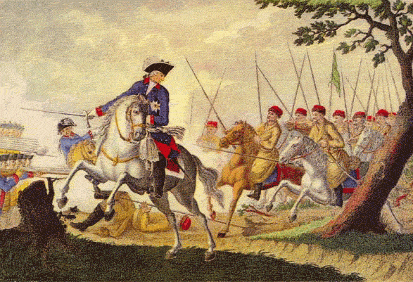 Español: Federico II a punto de ser capturado por una partida de cosacos en Kunersdorf