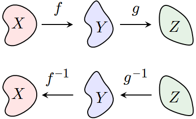 The  inverse of a  composition is the composition of the inverses, but in the reverse order. |