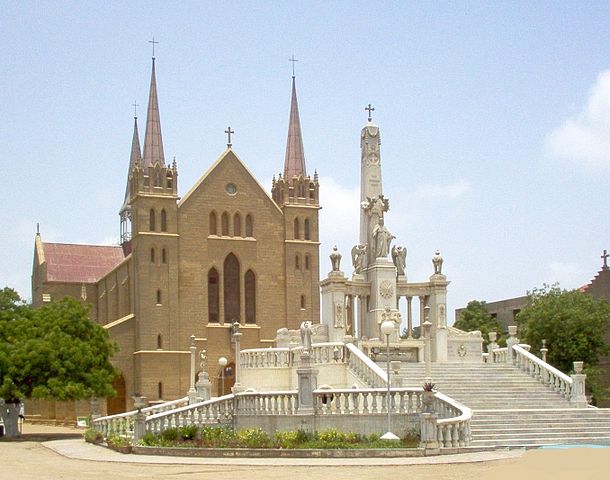 This is a  retouched picture, which means that it has been digitally altered from its original version. Modifications: shifted, cropped. The original can be viewed here:  Karachi_St._Patricks_Cathedral.jpg. Modifications made by  Rabanus Flavus.