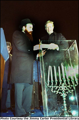 English: President Jimmy Carter at Lafayette Park (D.C.) Hanukkah menorah lighting.
