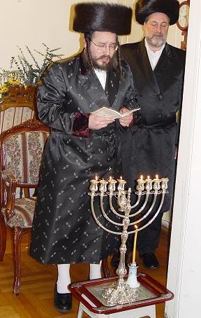 Description Grand Rabbi Aaron Rabinowitz on Hanukah