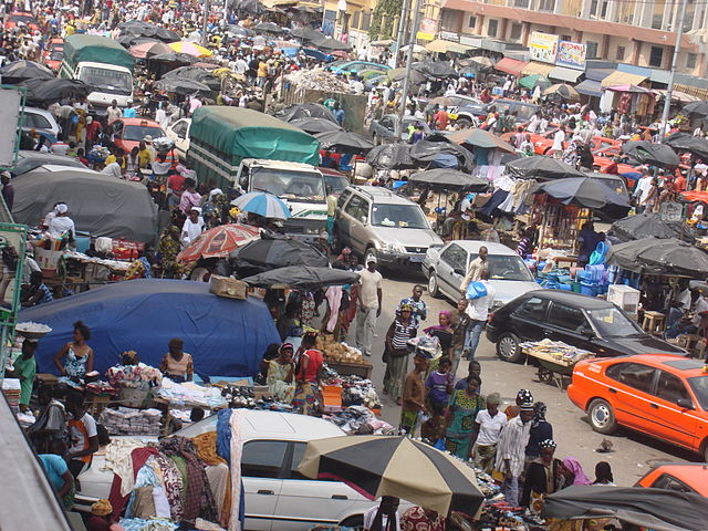 Français : Le marché traditionnel d'Adjamé à Abidjan, débordant sur le boulevard Nangui Abrogoua