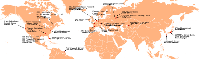 English: A map of space centers involved in the International Space Station. It is based on the map on page 3 of  this PDF, a NASA publication.