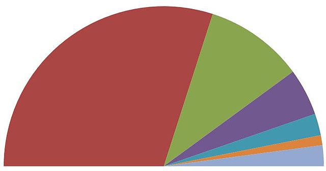 English: Ethiopian general election 2005 : parliament composition. Image only shows parties with more than 10 seats. The group "others" includes parties under 10 seats.  Red : EPRDF  Green : CUD  Purple : UEDF  Dark blue : SPDP  Orange : OFDM  Light blue : Others