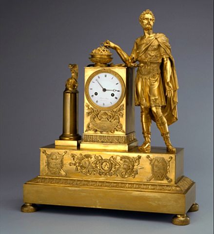 Deutsch: Kaminuhr mit vergoldeter Bronzestatue des Hannibals, französisch, Anfang 19. Jahundert von Deniére et Matelin, heute im blauen Salon des Weißen Hauses.