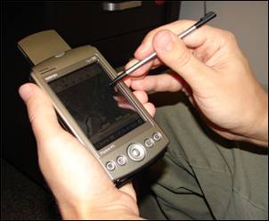 English: A handheld computer with GPS and GIS software is often used for scientific field work.