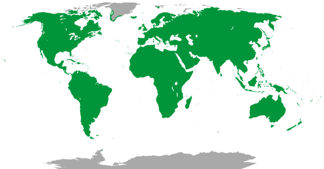 English: Terrestrial range of the Homo sapiens