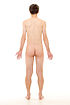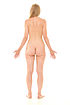Ornaments: Ear piercing, ring on left ring finger, nail polish on toe nails. There is some tilting of the upper trunk towards the left of the body, which may be positional or anatomical.