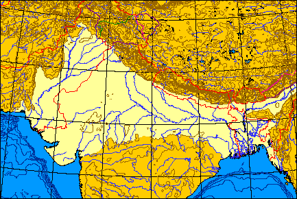 I produced this map myself using the program here and modifying it. It remains in the public domain. The map is an azimuthal equal-area projection. The Line of Control through Kashmir is green. Where the line of control along the Indo-Chinese frontier coincides with one side's territorial claims, the line is pink; borders claimed but not controlled are purple. Non-disputed boudaries are in red. QuartierLatin1968 01:36, 21 May 2005 (UTC)