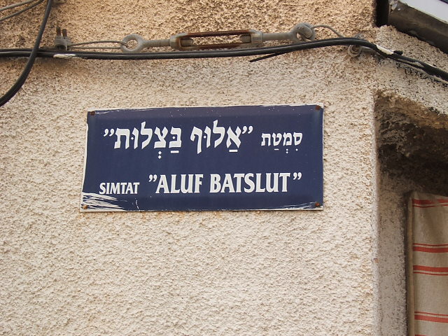 The sign of a alley in Tel Aviv, that keeps Bialik work "Aluf Batslut" name |