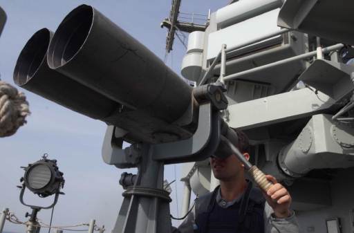 HMAS Melbourne binoculars.jpgAn officer aboard the HMAS Melbourne (FFG 05) looks through the ship’s binoculars (big eyes) while on bridge watch in Gulf of Oman, March 21, 2004. The Australian ship was participating in a Multilateral Undersea Warfare (USW) exercise conducted in the U.S. Naval Forces Central Command/ Commander Fifth Fleet area of responsibility. The exercise's objective is to promote Anti-Submarine Warfare (ASW) interoperability between the US, coalition, and multinational forces operating in the region. ( U.S. Navy photo by Photographer's Mate 1st Class Alan D. Monyelle) (Released)