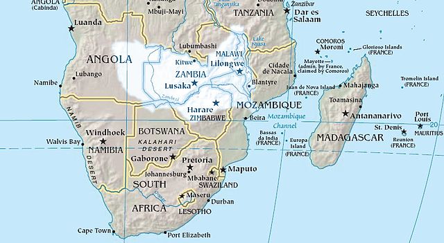 Map created from public domain maps available from the University of Texas. en.wikipedia.org: 18:00, 27. Feb 2005 . . Worldtraveller (Talk) . . 872x478 (115273 Byte) (Zambeazi river basin. Map created from public domain maps available from the University of Texas. {{GFDL}}) |