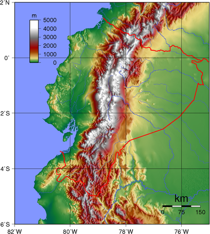 Description Topographic map of Ecuador. Created with GMT from public GLOBE data.
