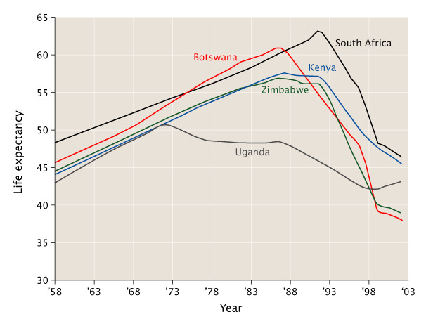 - 10:50:24, 15 September 2006 (UTC) Mark Dingemanse ( Talk | contribs) (Aids in Africa - Life expectancy in some hard-hit Southern African countries Created by Xed, based on [http://www.marginalrevolution.com/marginalrevolution/2005/02/the_african_cli.html this image], which in turn is based on pg156 or 158 from [h)