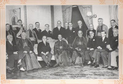 Português do Brasil: Visita do Cardeal Pacelli, Secretário de Estado da Santa Sé e legado papal, ao Brasil, em 1934, a caminho da Argentina. Na foto ao centro Presidente Getúlio Vargas na extremidade esquerda, sentado, o Sr. Antonio Carlos Andrrada, Presidente do Parlamento.